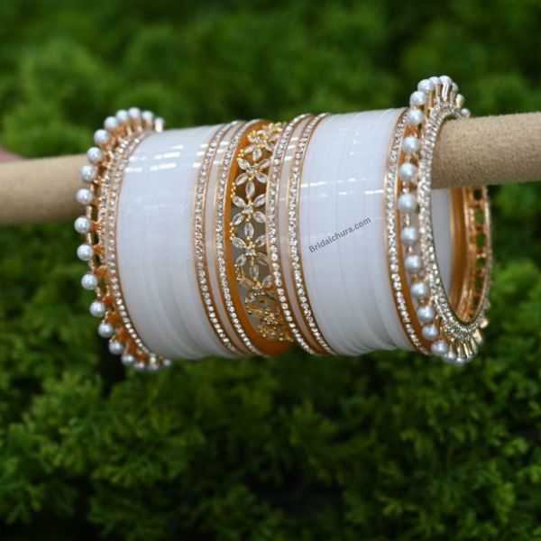 The white chura is the perfect accessory for any bridal outfit, seamlessly integrating with a variety of colors and styles. Whether you’re wearing a traditional saree, an elegant gown, or a modern fusion outfit, this chura enhances your look with understated sophistication. Its versatility ensures that it complements your wedding attire, adding a refined touch that enhances your overall bridal appearance.