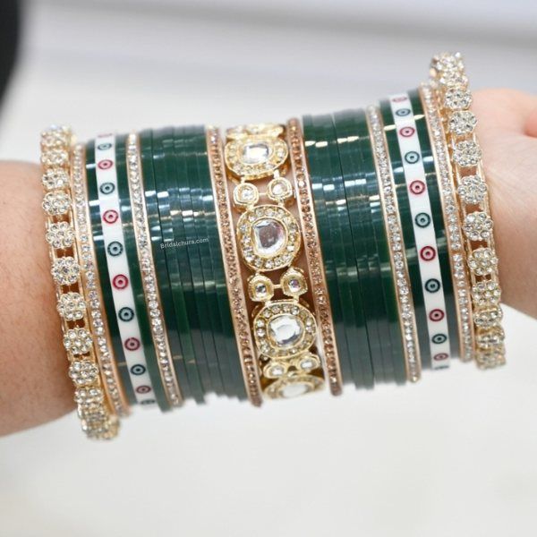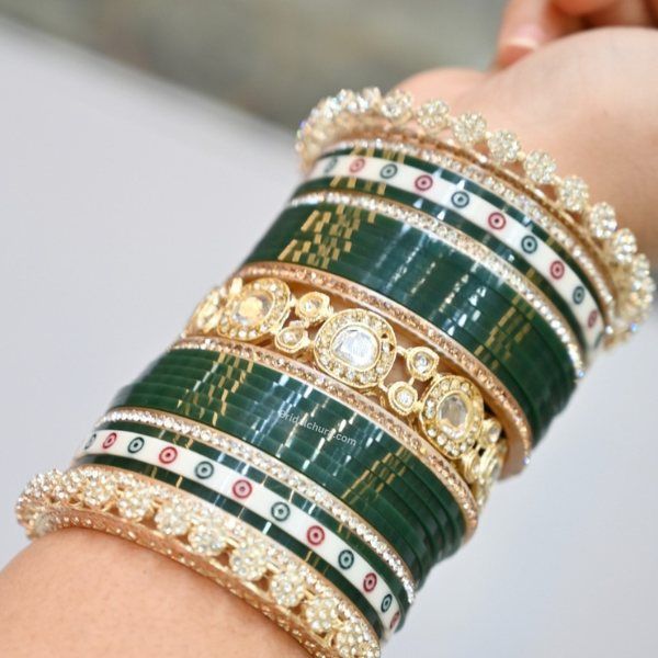 Chuda bangles are a significant and cherished element in traditional Indian weddings, particularly in North Indian cultures. They hold deep cultural and emotional value, symbolizing love, commitment, and the beginning of a new journey in a bride’s life. Typically, a set of chuda bangles consists of red and white bangles, often made from ivory, plastic, or acrylic, and is worn by the bride for a specific period after the wedding, signifying her newlywed status.
