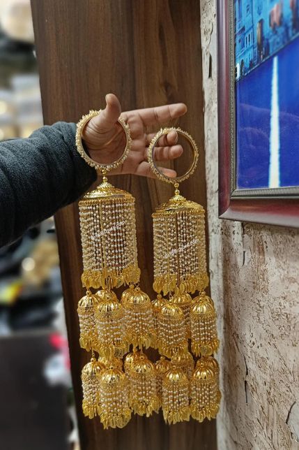 In Punjabi weddings, kaliras symbolize love, prosperity, and blessings for the new journey ahead. The pearl drops in this design add a touch of sophistication, perfectly complementing bridal chura and lehenga ensembles.