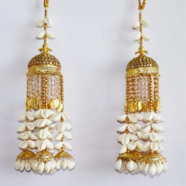 Golden Kalire are an essential part of a Punjabi bride’s wedding ensemble, symbolizing prosperity, happiness, and eternal love. These dangling ornaments, tied to the bride’s bangles by her sisters and female relatives, hold deep cultural and emotional significance. Traditionally, they are made of gold-plated metal, beads, and intricate embellishments, enhancing the bride’s beauty and grace.