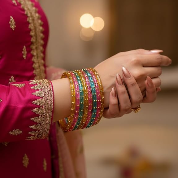 The versatility of InstaGlow bangles makes them ideal for various occasions beyond the wedding day. They are perfect for mehendi, haldi, sangeet, engagement, and even festive celebrations like Diwali and Karwa Chauth.