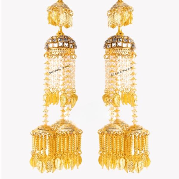 The Pearl Royale Kalira is an artistic blend of classic and contemporary styles. Featuring stunning pearl strands cascading gracefully with gold-plated leaves and delicate kundan embellishments, this Kalira showcases impeccable craftsmanship. The rich gold finish enhances its royal appeal, while the pearls bring a soft, sophisticated charm. The dome-shaped top, adorned with intricate carvings, makes it a mesmerizing addition to any bridal look.