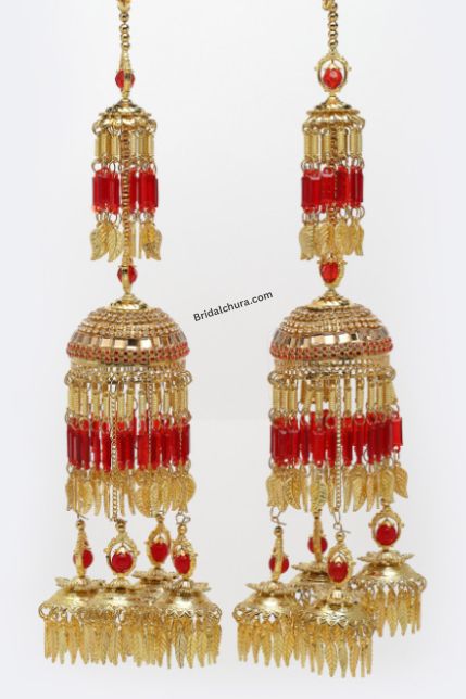 The design of the Radiant Golden Leaf Kalira is a visual treat. Featuring intricately carved golden leaves that dangle gracefully from finely crafted domes, this Kalira exudes opulence and movement. The radiant gold finish reflects light brilliantly, adding a touch of sparkle with every step the bride takes.