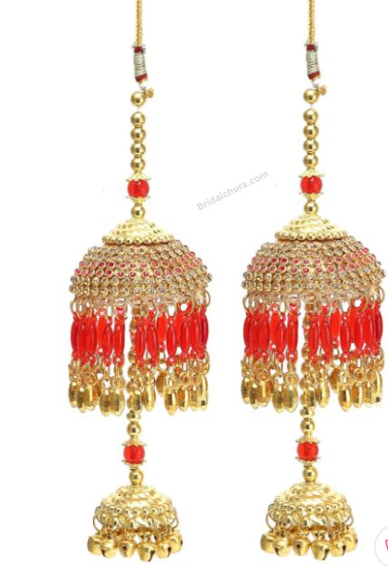 The Shining Red Jewel Kalira is a bridal accessory that captures attention with its vivid hues and sparkling gemstones. In bridal ensembles, especially in Punjabi and North Indian traditions, this style of kalira introduces drama, passion, and elegance. The red jewels—whether ruby‐tones, garnets, or artificial stones—set against gold or other metallic backdrops creates a striking contrast that complements red lehengas, rich maroons, and even ivory or pastel outfits seeking a touch of regal color.